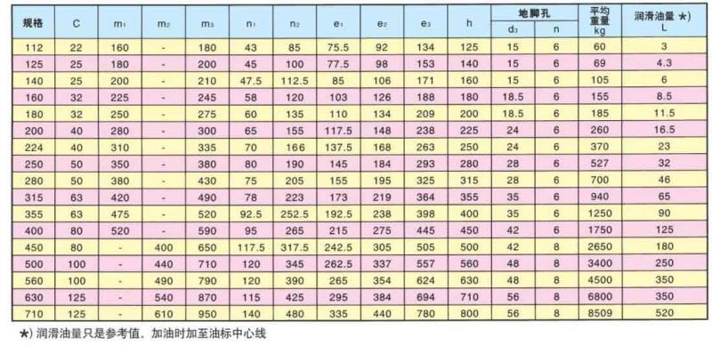 3、ZLY減速機的安裝尺寸見表